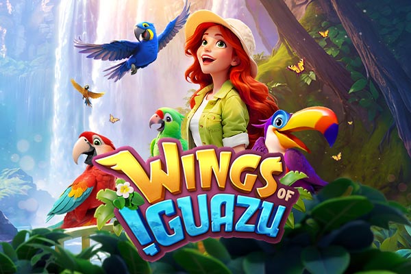 इगुआज़ू जलप्रपात से प्रेरित एक प्रकृति-थीम वाला खेल, जिसमें रंग-बिरंगे पक्षी और हरे-भरे जंगल के दृश्य हैं।